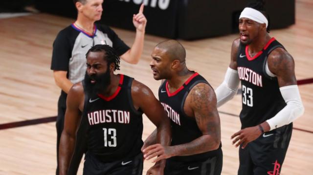 Houston obtuvo la victoria con dos hombres inesperados. Por un lado, Robert Covington acabó el último partido de la serie con 21 puntos (6-11 en triples) y 10 rebotes para ser uno de los goleadores. El otro jugador que tuvo una gran intervención fue P.J. Tucker, quien marcó su segundo gol de campo con la flotadora que le devolvió la ventaja a Houston en los instantes finales.