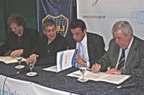 14:17 | Finalmente, Jorge Amor Ameal, el presidente de Boca Juniors, se hizo presente en Zárate y firmó el convenio junto con el intendente municipal Osvaldo Cáffaro y el presidente del Club Independiente, Franco Páscolo. De este modo, el xeneize hará de local durante la próxima temporada de la Liga Nacional.